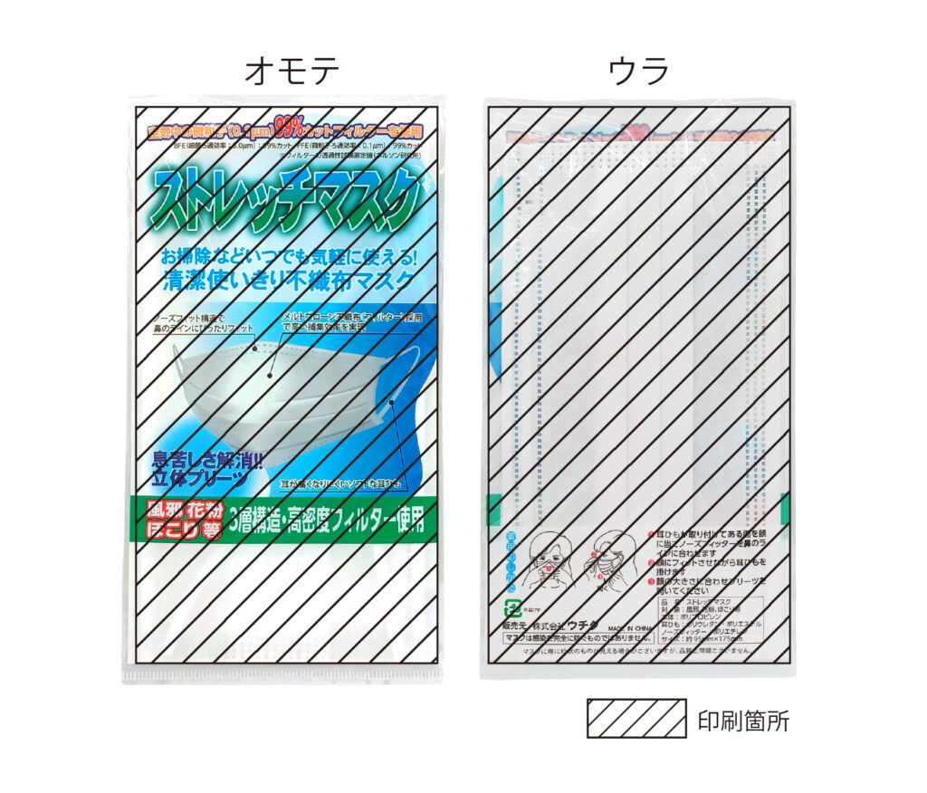 印刷した紙ラベルと製品を無地透明フィルムに封入