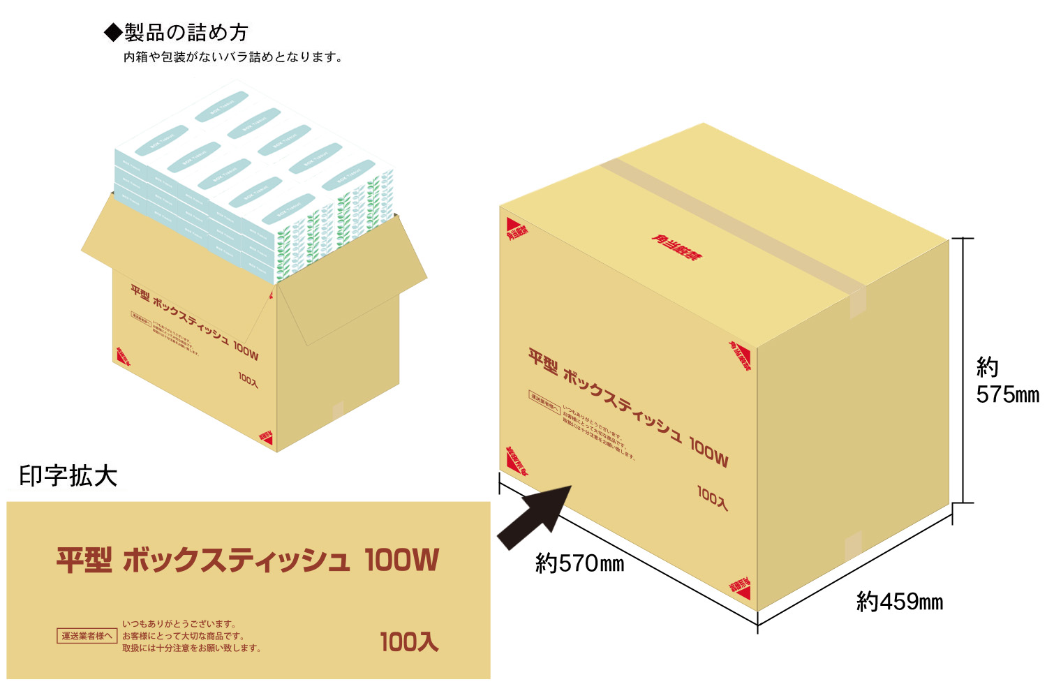 平型ボックスティッシュ100W